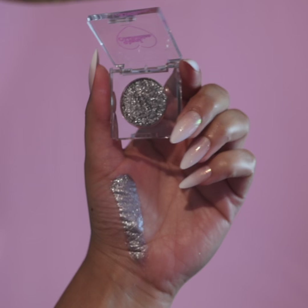 Our eyeshadow formula is richly pigmented, super sparkly, ultra-smooth and velvety. Designed for easy blendability and longwear application, they stay in place all day without any creasing or fallout. Our shimmer eyeshadow finish is a velvety, foiled and unique wet looking shadow with intense sparkle. A must have for all makeup lovers!